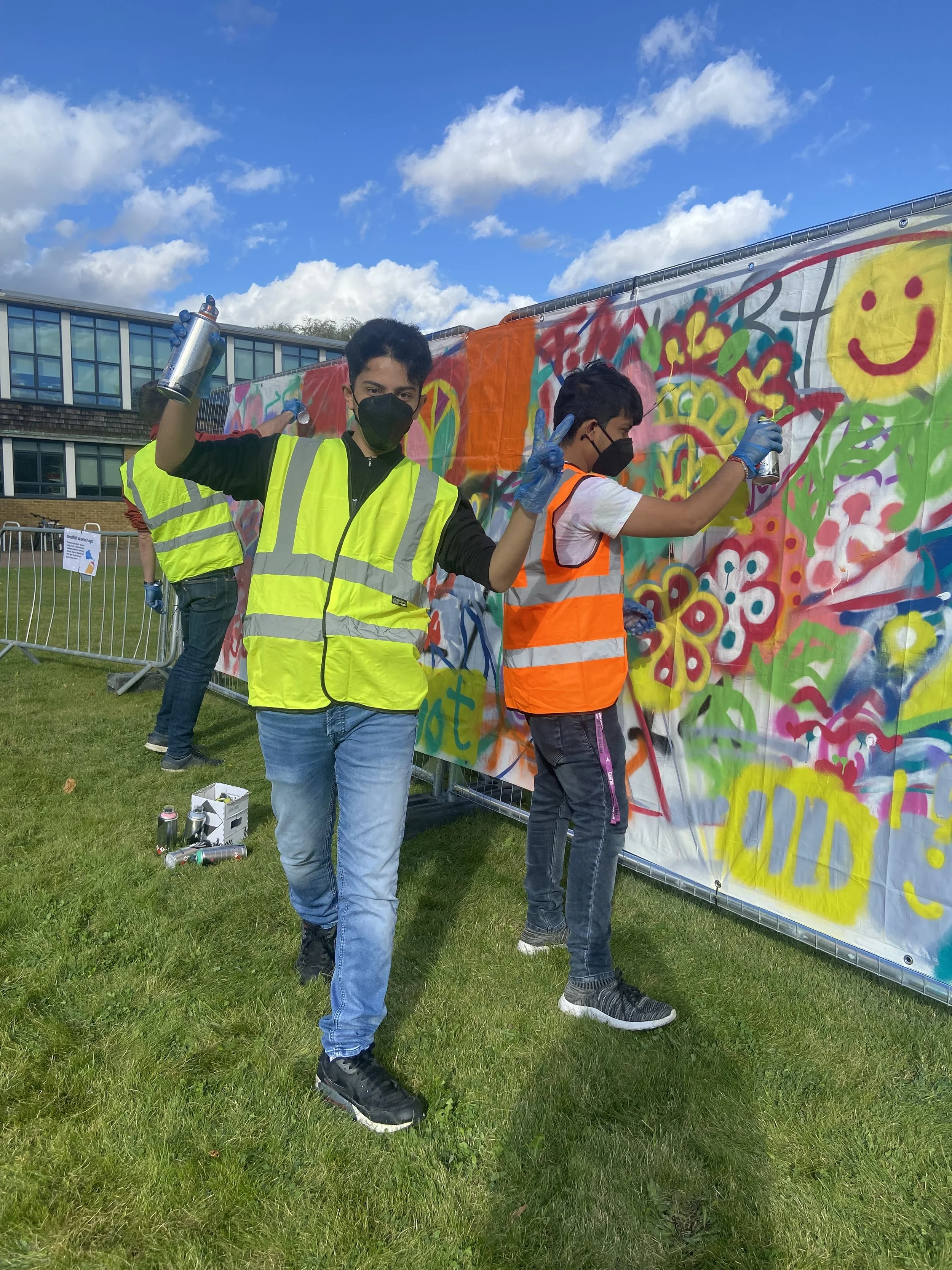 We get up to some serious fun… Scroll down to see some of our previous projects… Freshers Mural Workshop Hope Gardens Summer Programme Metal Culture Kickstart Artist Residency Amplify Gaza Fundraiser Art For All Ages Climate Emergency Skate Jam w/ Keep Rolling CIC & Save The Children Draw Your Community pop-up Studio Rolling Roots Skate Jam, Letchworth Festival One People Studio Summer Camp 25 King George Skatepark Mural 25 Meet Up with Keep Rolling CIC